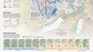 A supplement to the December 2021 issue of National Geographic Magazine, this map shows the physical features of the landscape, the boundaries of its many protected areas, and the annual migration of over a million wildebeests-one of the last remaining large-mammal migrations on earth. The migration is represented using over 340,000 location points collected by GPS collars during an ongoing 20-year biological study. The map also explains how the timing of the seasonal rains drives migration and details the journey of an individual female wildebeest as she crossed multiple habitats, rivers, and an international boundary during 2020.